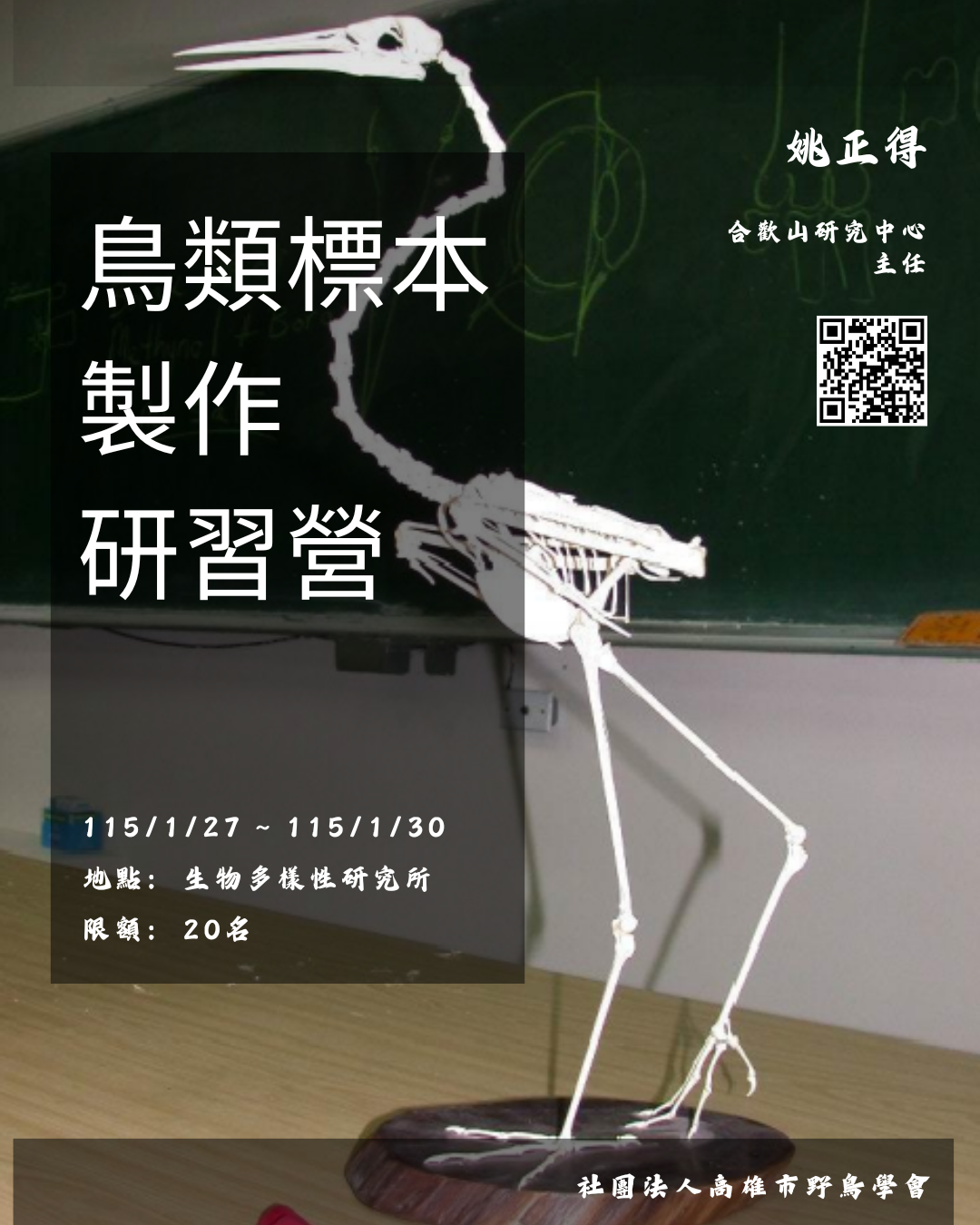 高雄鳥會將於明年寒假舉辦一場為期四天的【鳥類標本製作研習營】